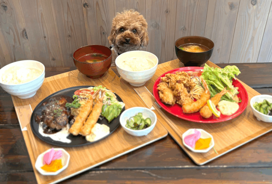 ハンバーグは柔らかくジューシーでエビフライはプリプリ!