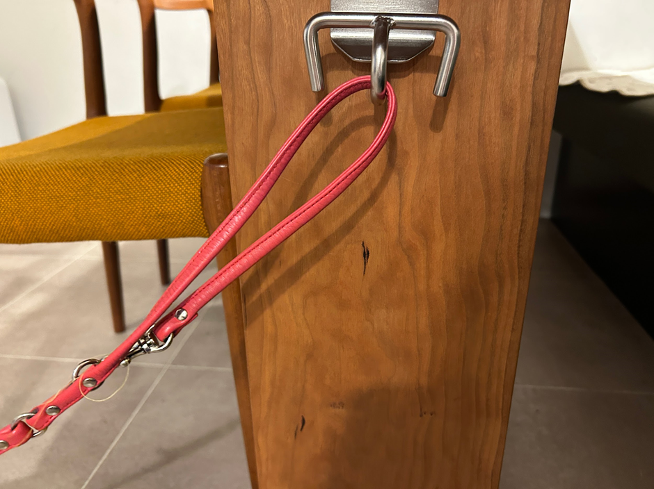 リードフックが備えてあるのは飼い主にとっては両手フリーで食事出来るのでありがたいですね。