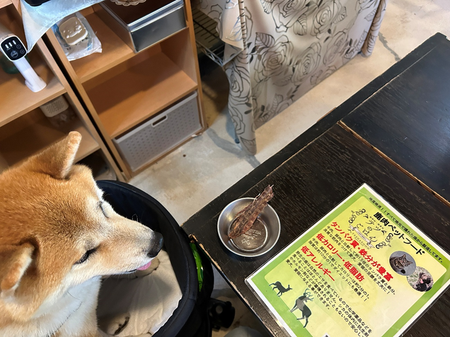 「わんちゃんにどうぞ~」と店内販売のおやつの試食をいただきました。
