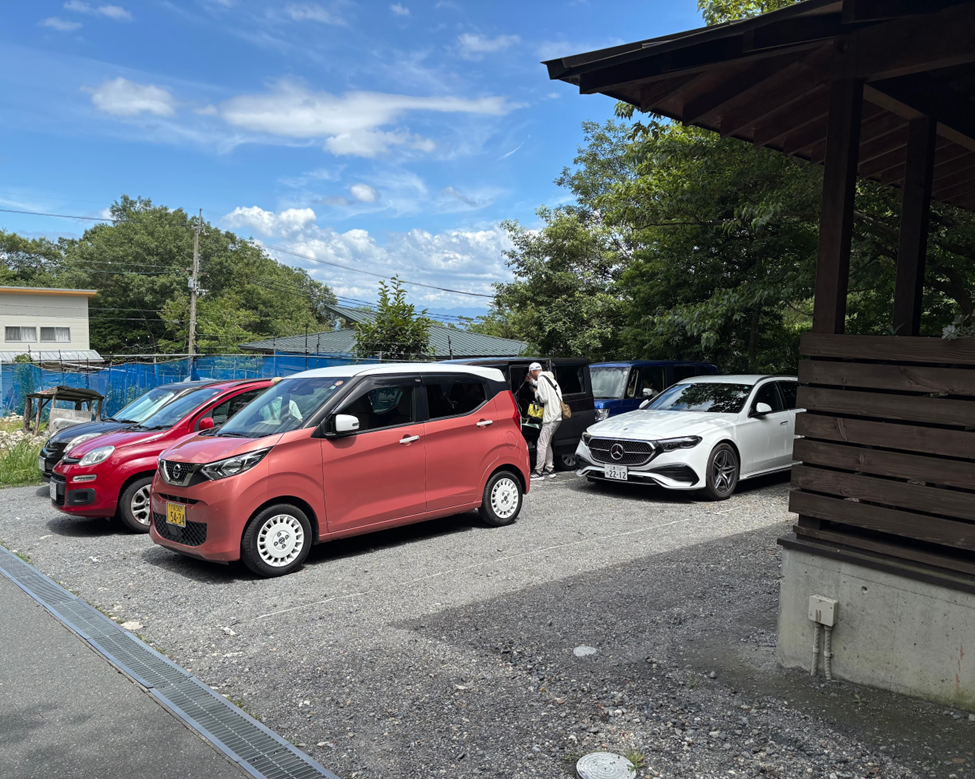 お店横の無料駐車場(8台)に車を停めますが写真通り前後に停めるので、後ろの車が先に出る場合は前に停めた場合動かす必要があります。