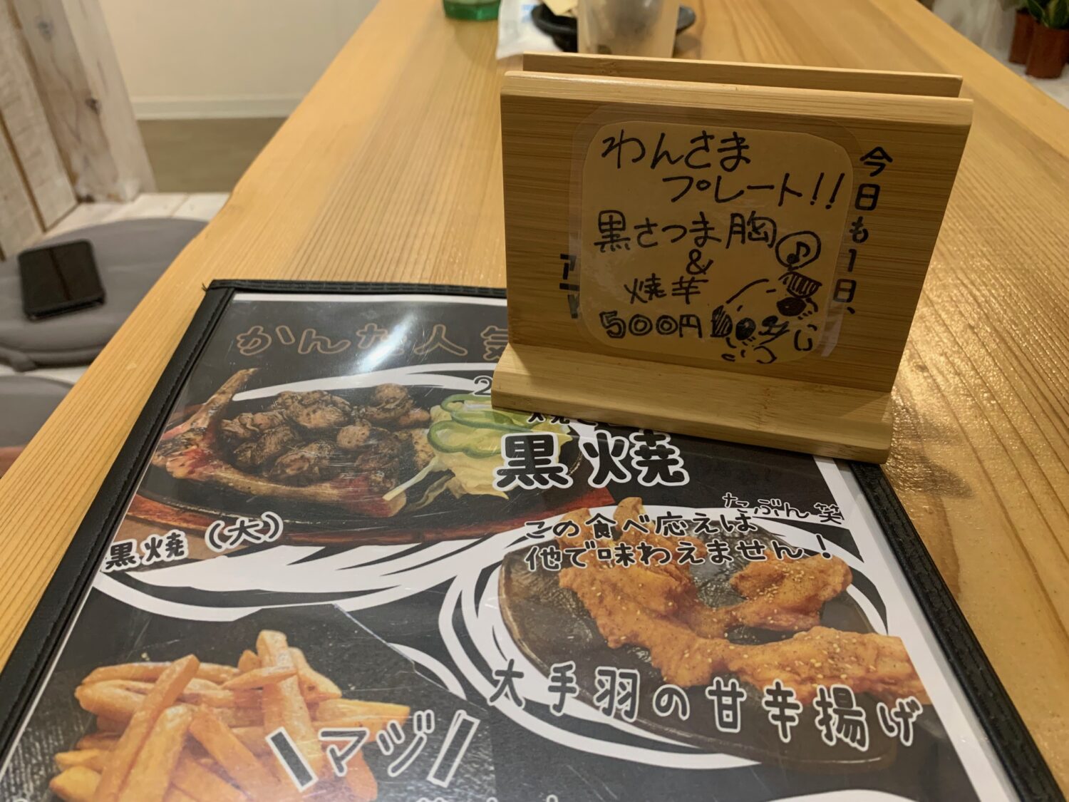 お店のメニューを拝見!初めて聞く、黒焼に、人気メニューの大手羽の甘辛揚げ、