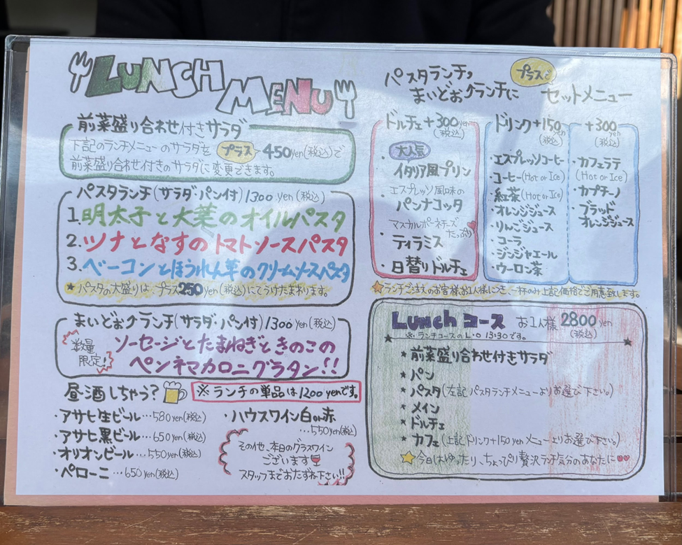 3種類のパスタや数量限定のグラタン、コース料理まであります。