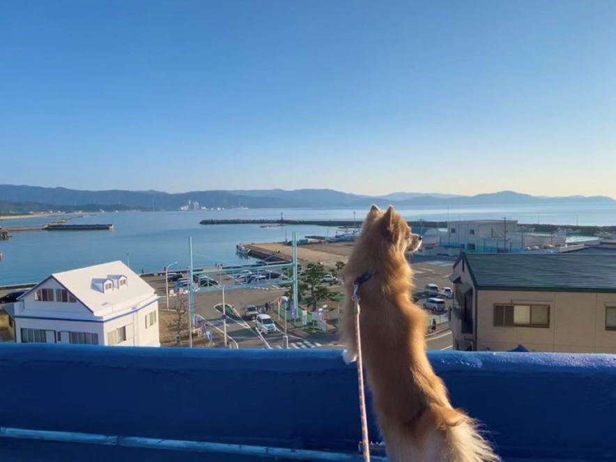 ドッグランはとても広くて、景色も抜群!遠くに海が見えて最高のロケーションです。