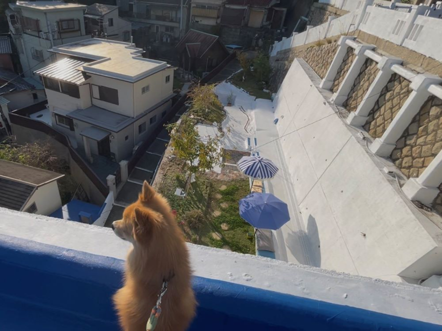 ワンちゃんは抱っこでと言われましたが、「きぃ太」は自分から仕切りに前足をかけて景色を眺めていました。