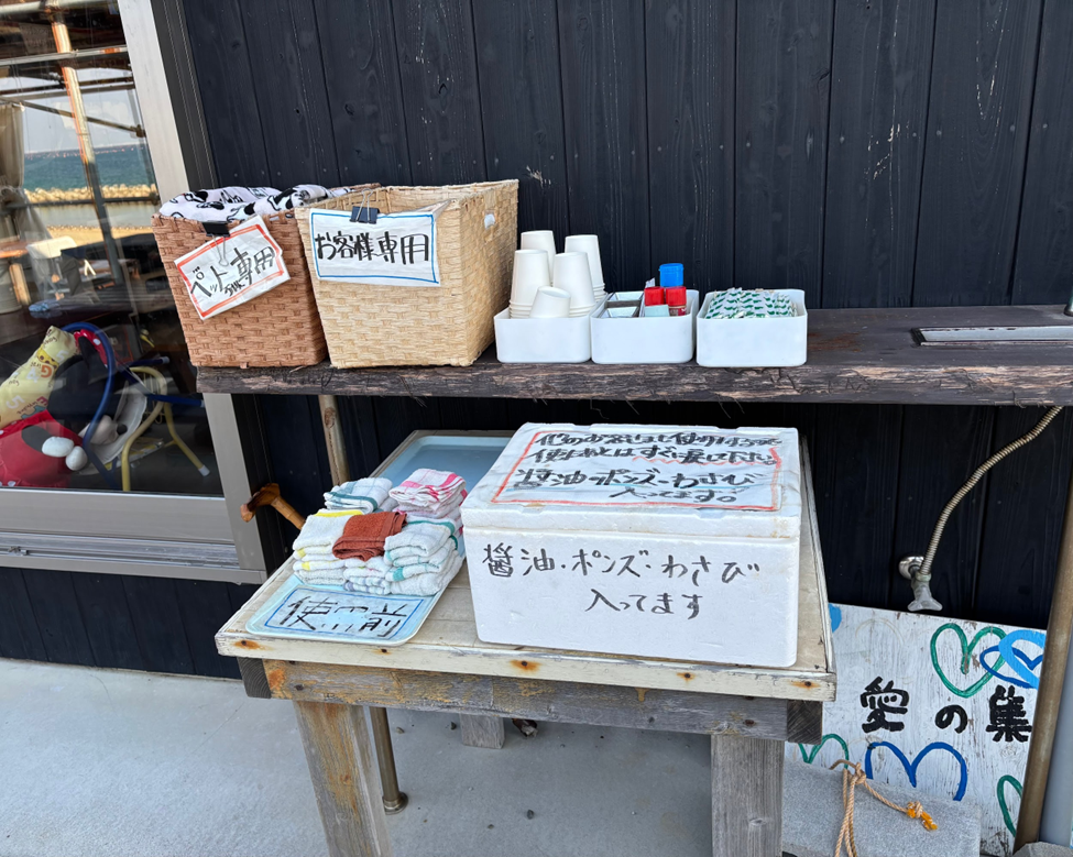 ペット用のブランケットや人間用のブランケット、ワサビやお醤油、ポン酢等も全てここに準備されています。