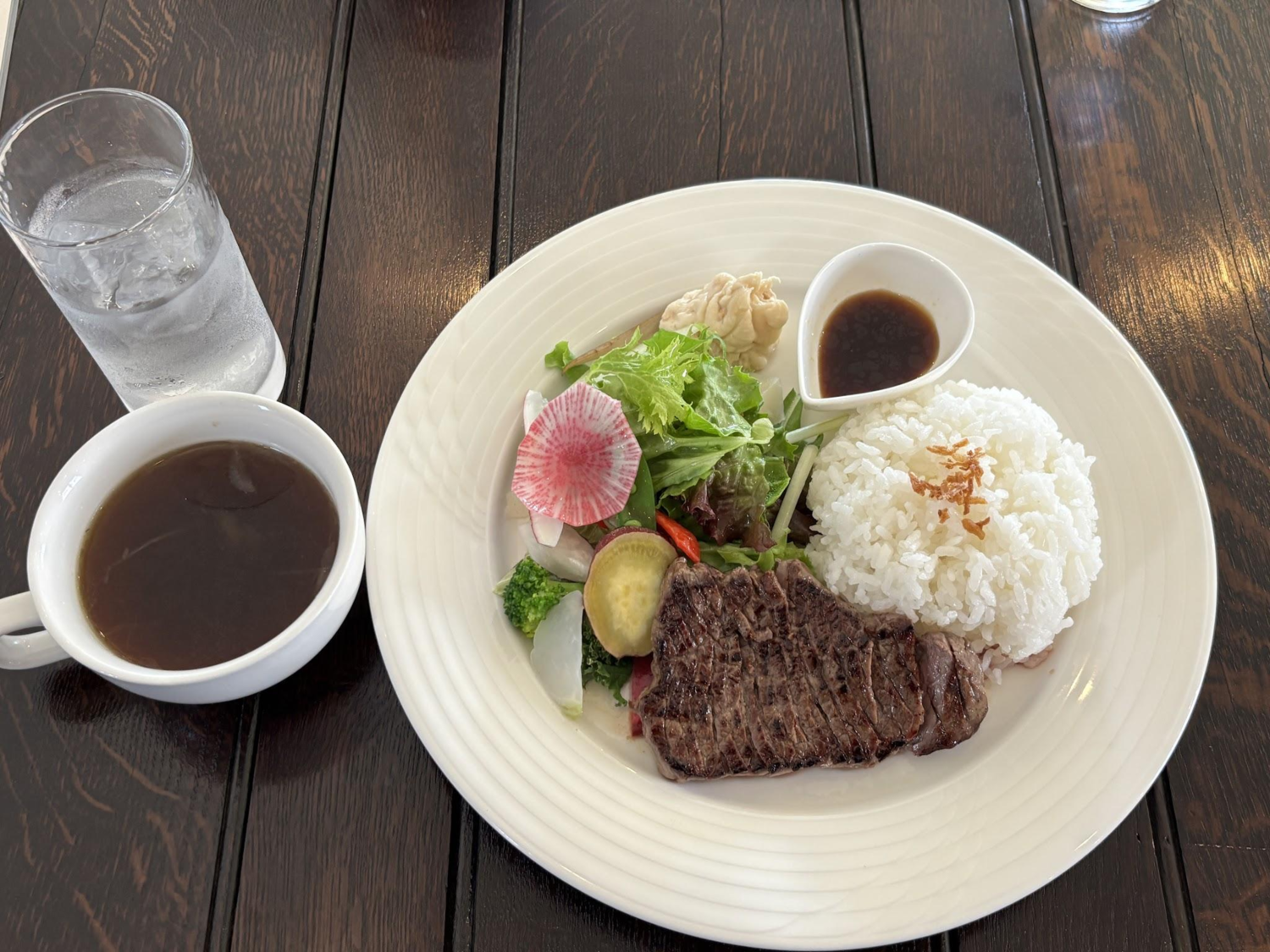 パパが注文したビフテキプレートがこちら。ワンプレートですが上品にまとめられていてとても美味しそうです。