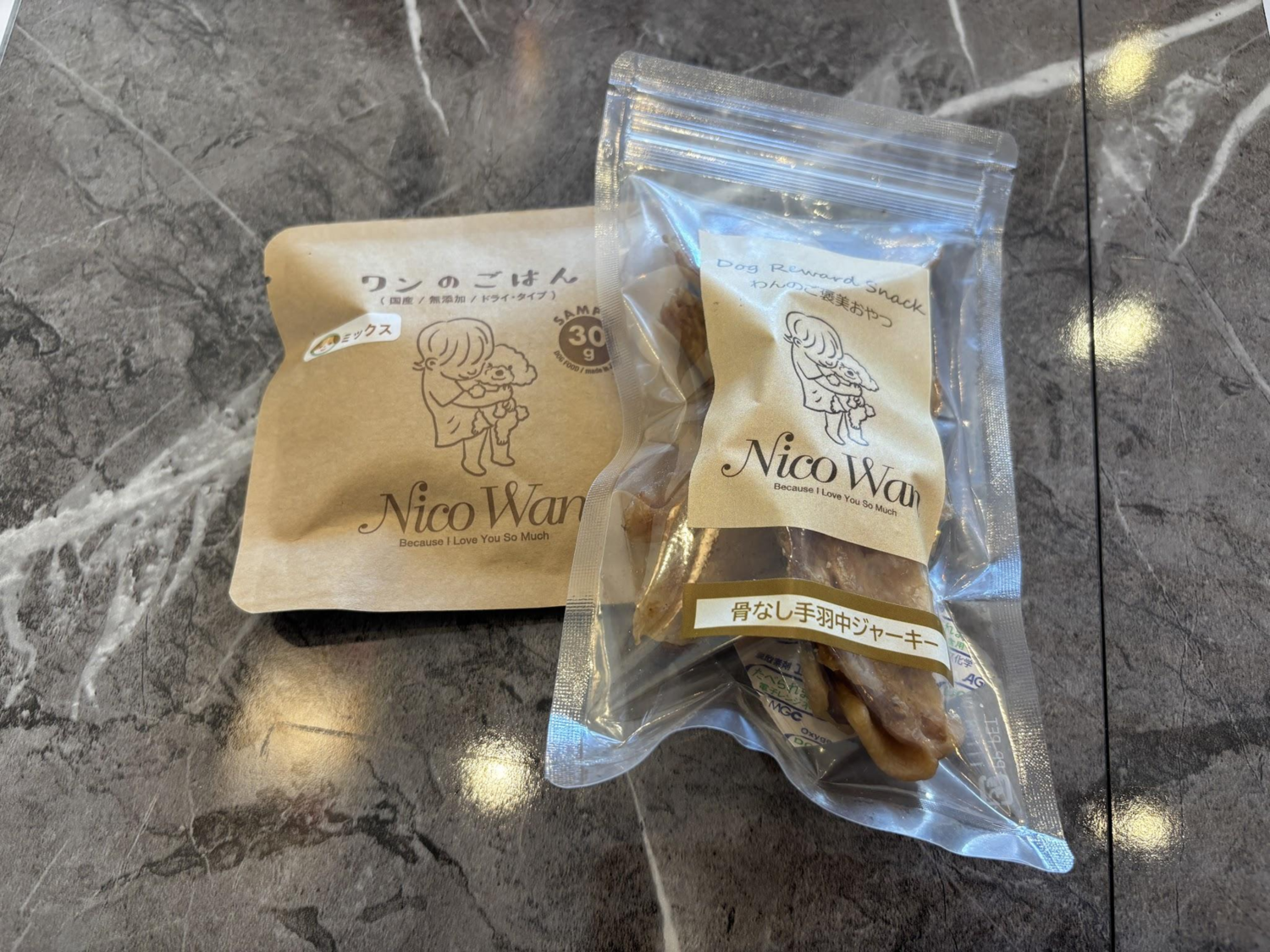 わんこメニューはありませんが、おやつは販売されています。ちなみに写真の「ワンのごはん」は試供品としていただきました。