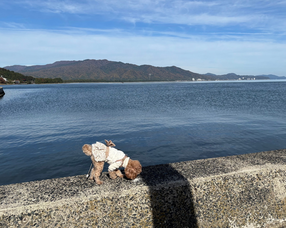 お店の前は海になっていてちゅらも普段なかなか匂うことのない海の潮風を必死でクン活中♪