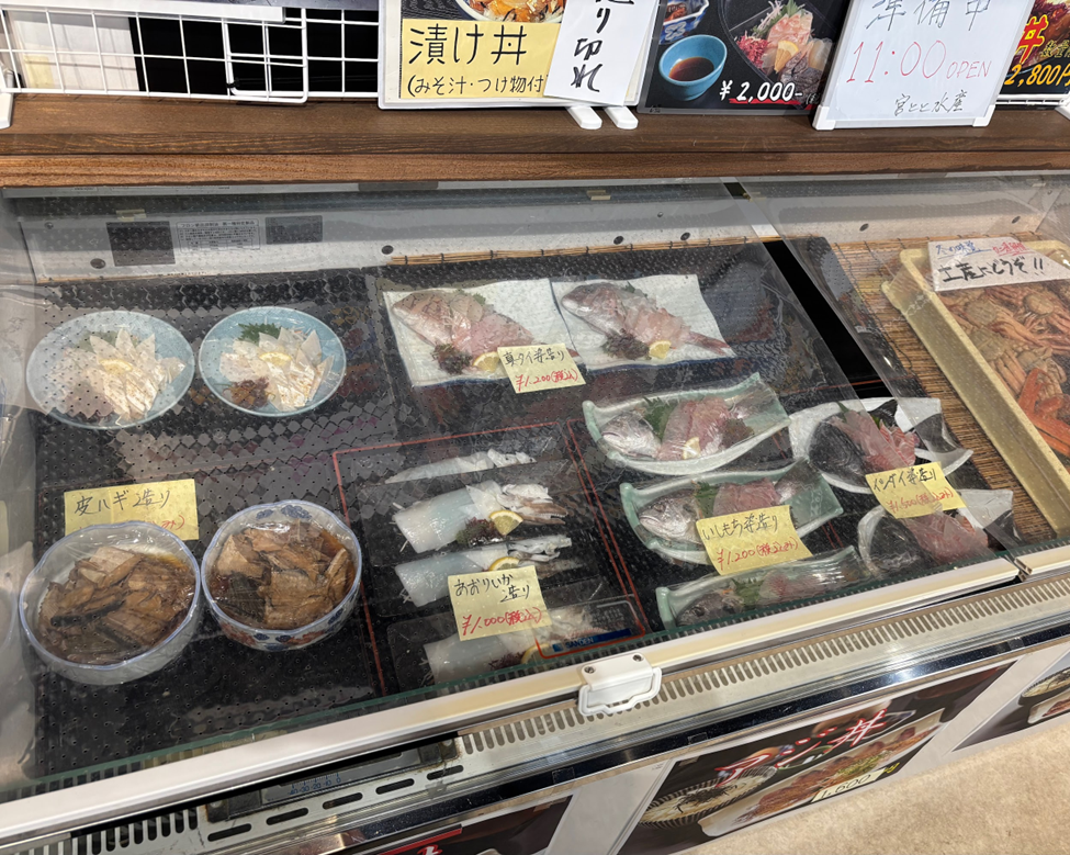 丼や定食、好きなお造りを購入して食べたりもできるようです。