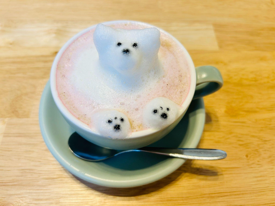 春の期間限定メニュー(自家製さくらラテ)は、桜餅に使う葉っぱを丸々使っているそうです。ちなみに4月いっぱいはメニューにあるそうですよ!