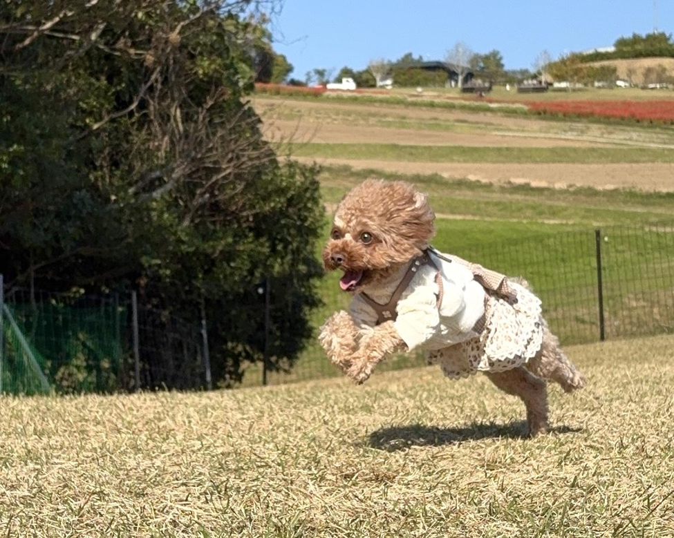ちゅらも気持ちのいい場所でお散歩できて嬉しそうな表情にみえます。