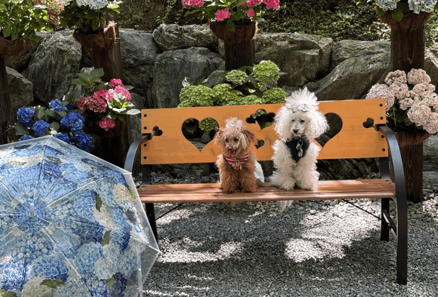 今回訪れた救馬渓觀音、あじさい曼荼羅園は中門を入ってからは階段が多く、あじさい曼荼羅園の園内でもペットカートが邪魔になる場面がありました。わんちゃんを持ち運ぶ事を検討される場合はリュック型のペットキャリー等がおすすめです。また、ペット同伴可の寺社仏閣ではありますが、沢山の方が来園し且つ通路も狭い場所も多いので、お散歩のマナーと周りの方に対する配慮も必要です。