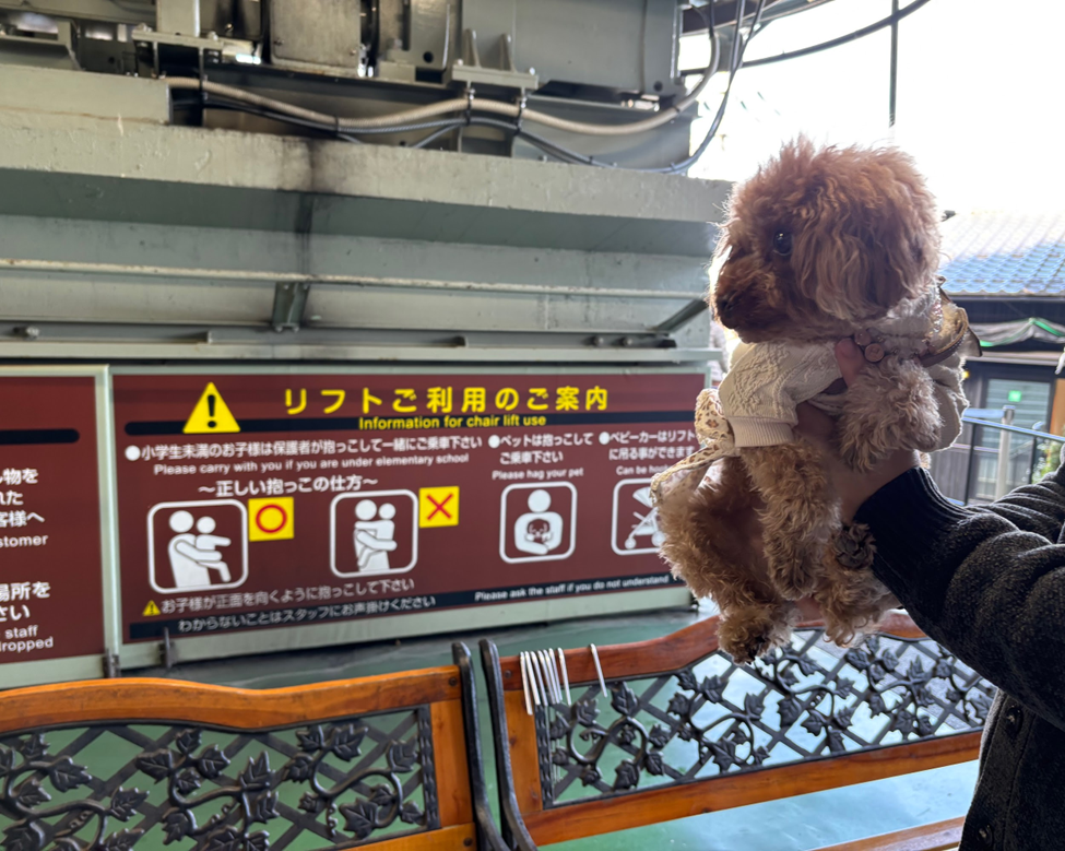 ペットカートも持っていきたい人はリフトの係の方が荷物だけをリフトにぶら下げてくれるのでカートも持っていけますよ♪