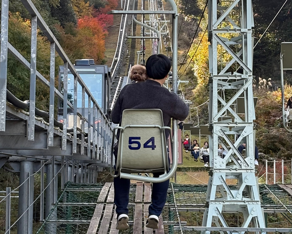 リフトの横にモノレールもありますが、わんこ連れの人はモノレールには乗れないのでリフトで上がります。