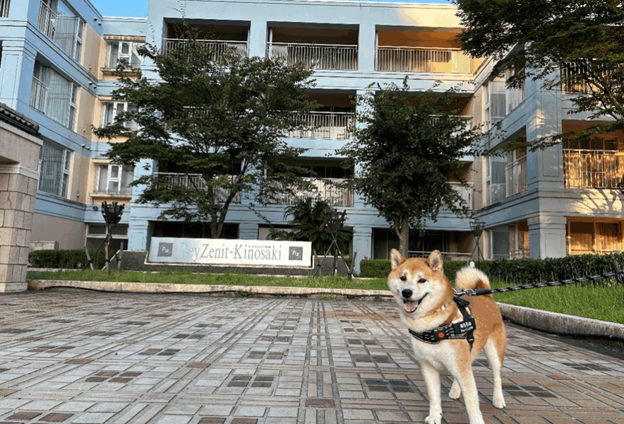 リードをして外に出ます。ドッグランは部屋のすぐ前!