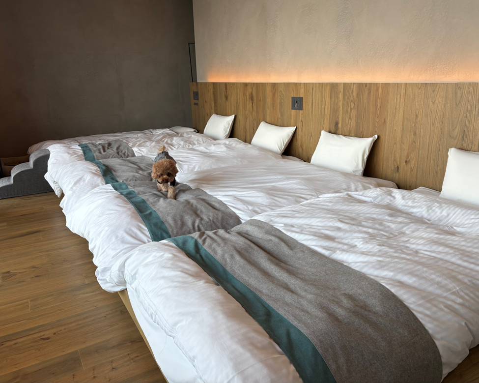 寝室もわんこOKで同じベッドで寝られるのがとっても嬉しいです♪