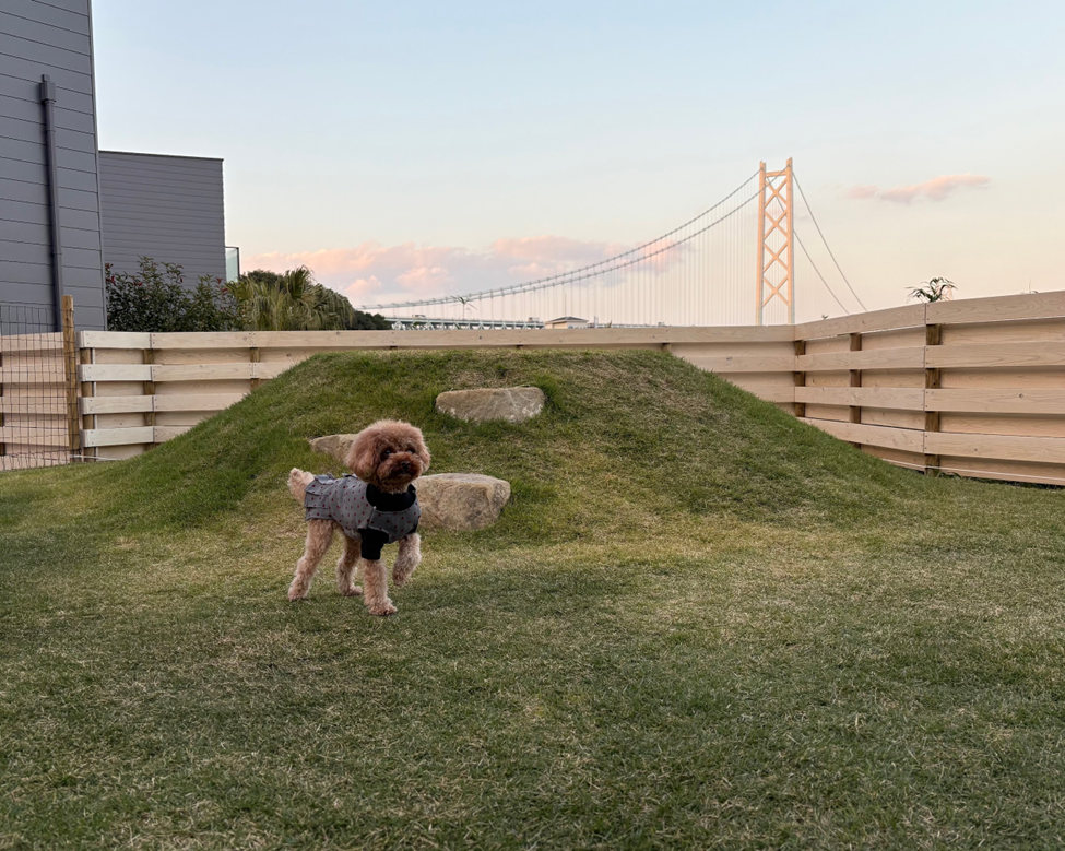 ドッグランもあり、そこからは明石海峡大橋と海が見える最高の景色。
