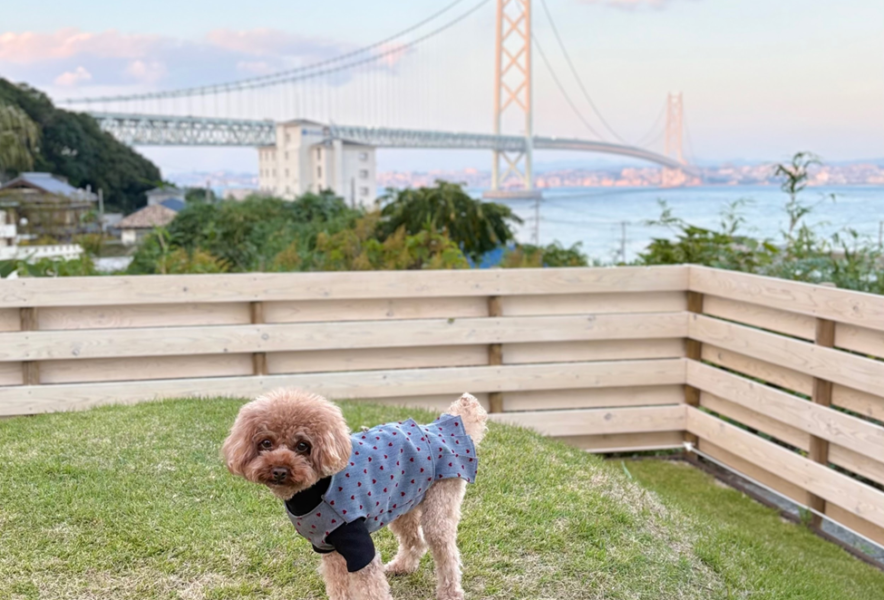 ドッグランもあり、そこからは明石海峡大橋と海が見える最高の景色。