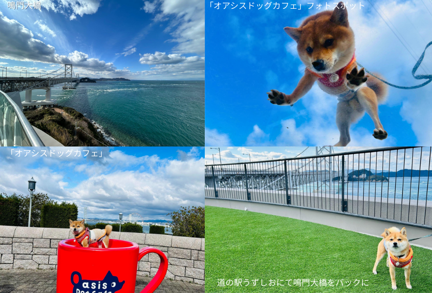 チェックアウト後は、道の駅うずしおにて鳴門大橋をバックに写真撮影!ちょうど1歳最後の日のベストショット、ちょっとたくましくも見えるりきでした。